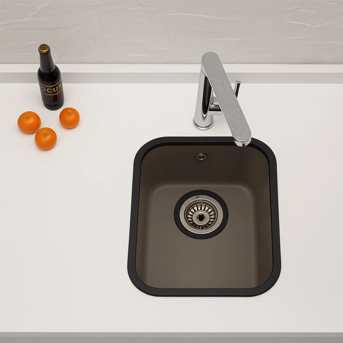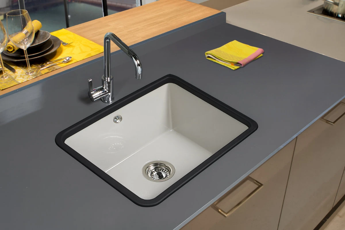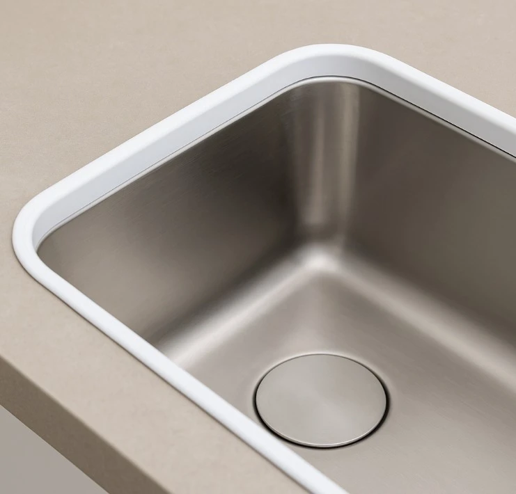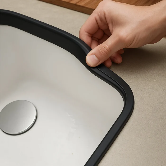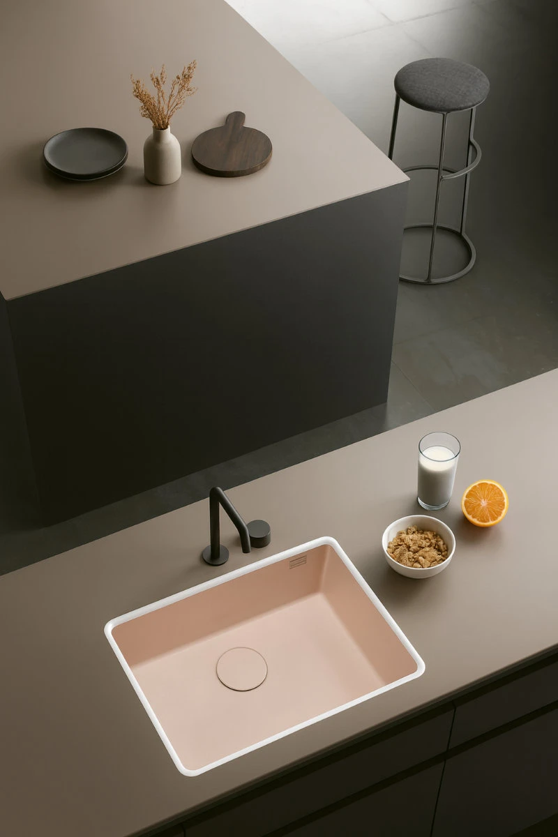 Se fabrica en tres medidas para adaptarse perfectamente a diferentes espesores de encimera, y en cuatro colores neutros y elegantes —negro, gris, crema y blanco— que se integran de manera armónica con cualquier diseño o estilo de cocina.